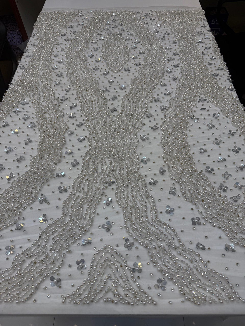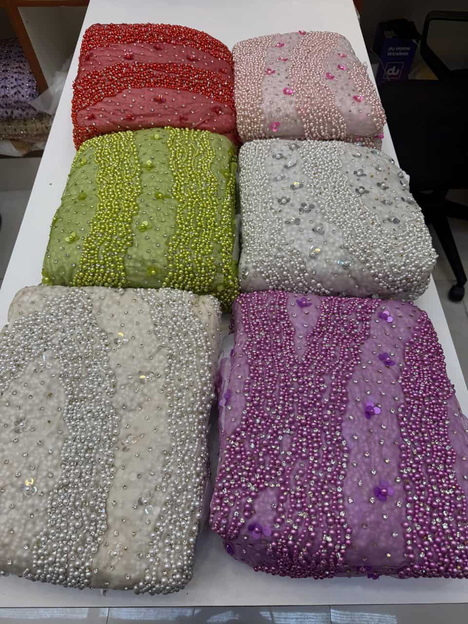 An ethereal masterpiece that captures light from every angle, Aurora Shimmer is a dazzling beaded & crystal tulle adorned with intricate hand-beading. Iridescent crystal tubes, micro-crystal, and gleaming pearls are meticulously placed to create a celestial sparkle — perfect for statement couture.