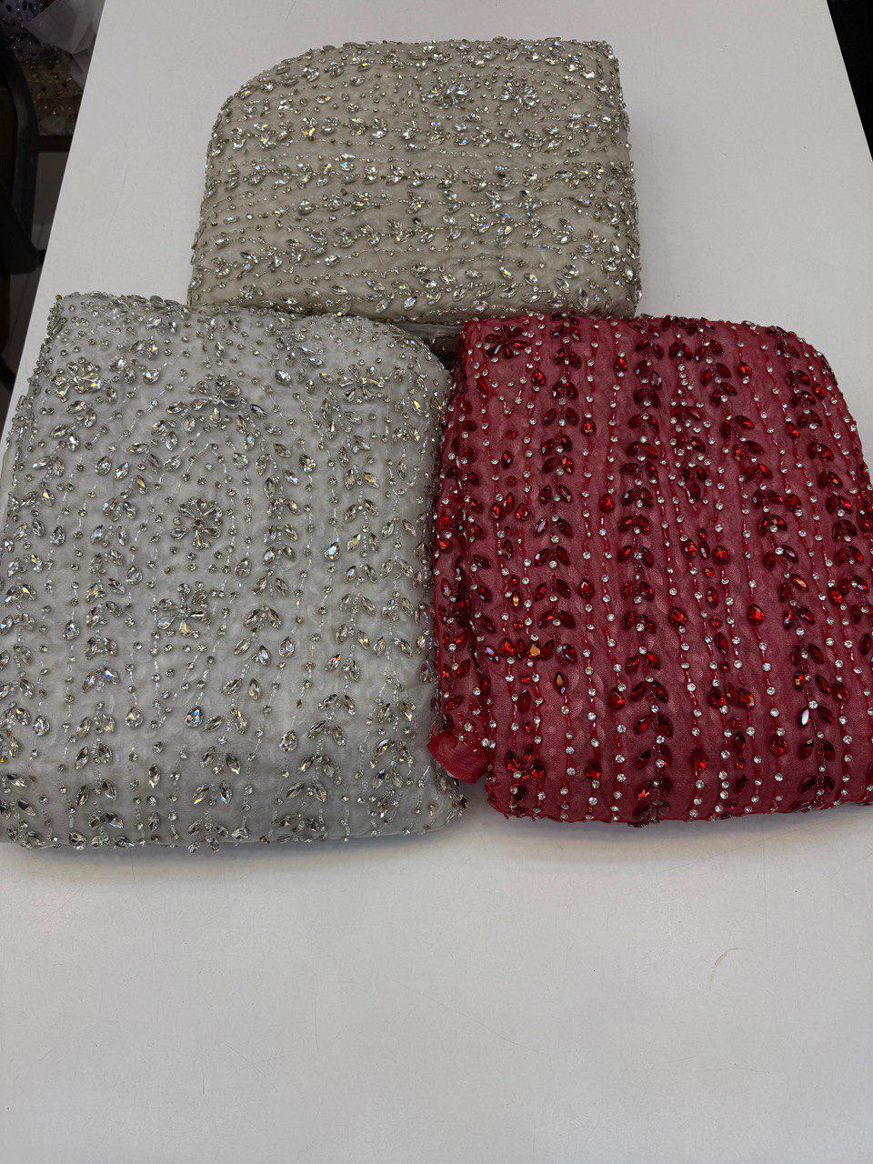 Set the tone for your next event in Wine Flame, a premium illusion embellished luxurious mesh drenched in rich red and crystal-clear stones. The elevated damask flame motifs and radiant hemline florals create a bold, elegant, and ultra-feminine aesthetic — made for women who want to stand out unapologetically.