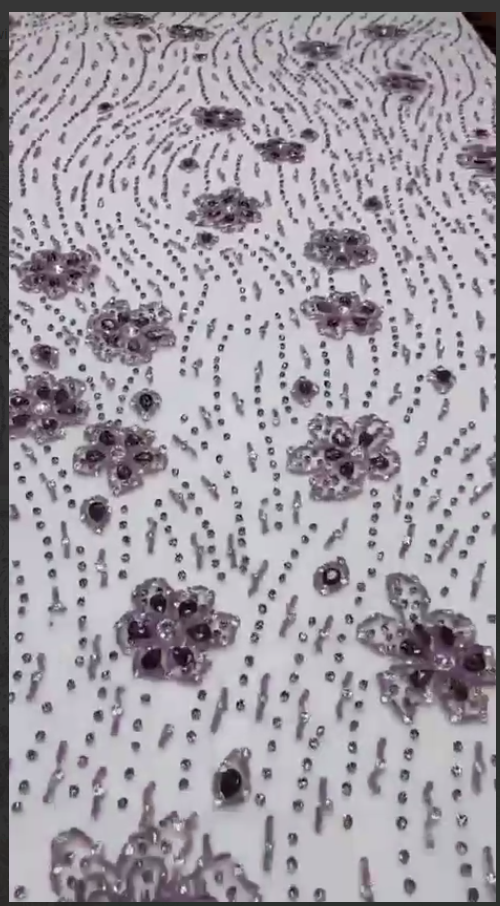 Enchanted Bloom is where artistry meets luxury ,a lively garden of intricate floral bridal fabric dancing across a light blue base. With a palette of lime green, red, emerald, and gold, this fabric captures the romance of spring while exuding couture sophistication.