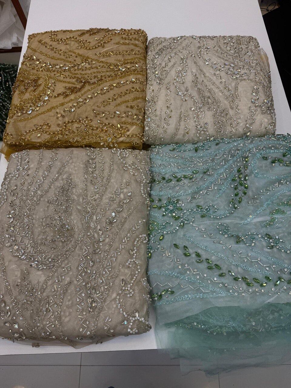 Enchanted Vine is a captivating crystal embellished tulle fabric that weaves nature’s elegance into high fashion. Set on a delicate teal tulle, intricate vine and leaf motifs are brought to life with glistening silver crystals and deep garnet teardrop gems. Each bead and stone is meticulously placed to create a rhythmic, organic flow — perfect for statement couture creations.