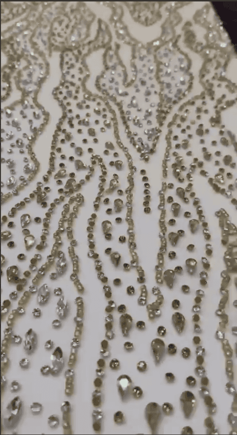 This exquisite embellished fabric is the perfect blend of artistry and luxury, crafted to turn every design into a breathtaking statement