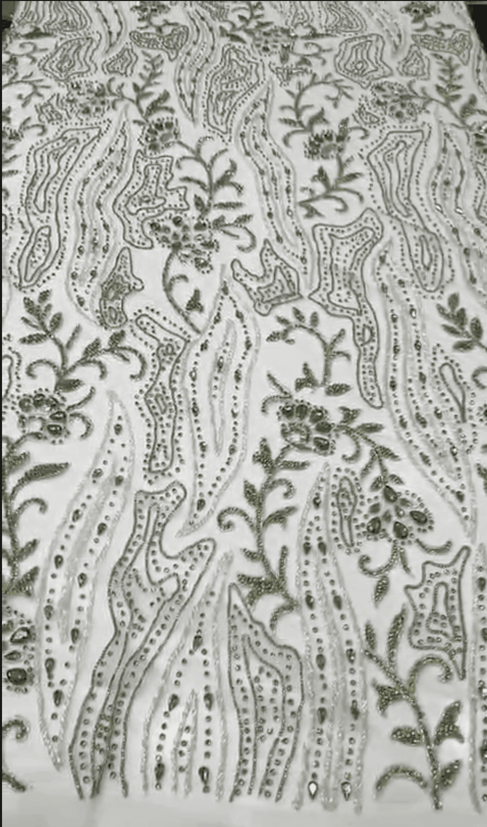 Perfect for bridal gowns, evening wear, couture dresses, luxury abayas, lehengas, and statement overlays, this fabric embodies timeless elegance and artisanal craftsmanship.
