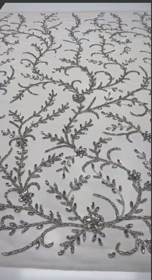 This fabric doesn’t just shine—it speaks luxury. With its delicate artistry and premium embellishments, it transforms any design into a statement of elegance and exclusivity. Whether styled as a full dress, statement skirt, or detailed overlay, it ensures sophistication at its finest.