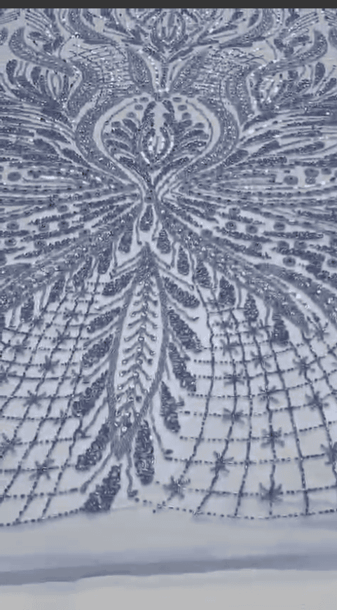 Bring elegance, sophistication, and a mesmerizing glow to your designs with this Luxury Icy Blue Crystal Embellished Tulle Fabric, crafted for high-end fashion creators and brides seeking a standout couture look.