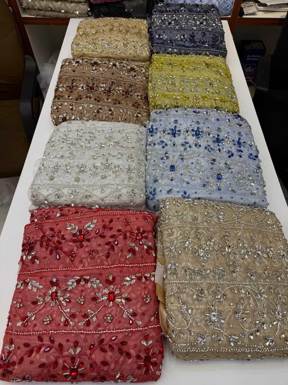 This fabric doesn’t just shine—it speaks luxury. With its delicate artistry and premium embellishments, it transforms any design into a statement of elegance and exclusivity. Whether styled as a full dress, statement skirt, or detailed overlay, it ensures sophistication at its finest.