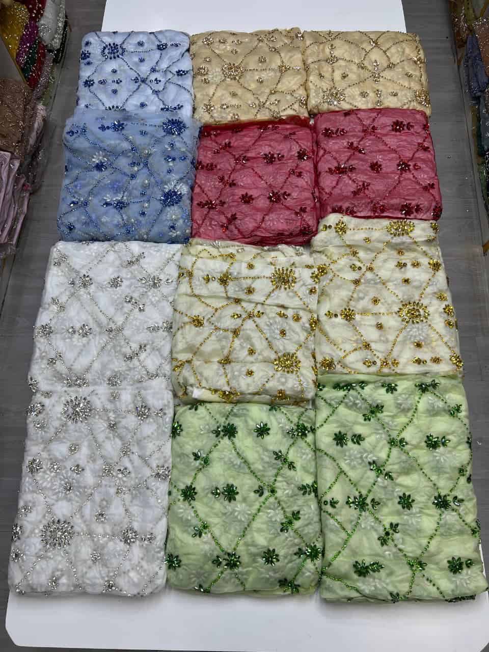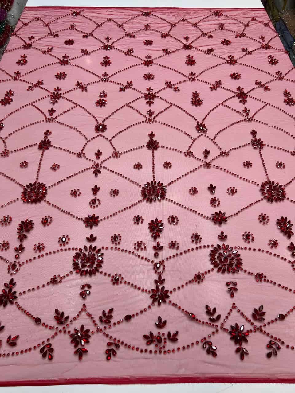 Introducing a fabric that commands attention — this deep red crystal, hand-embellished masterpiece is designed for designers and brides who want to make a statement with confidence and sophistication.