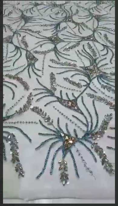 This embellished fabric is a statement of class and sophistication, ideal for women who want to stand out in unforgettable elegance. The rich rhinestone detailing adds depth, sparkle, and movement, making every step shine like luxury.