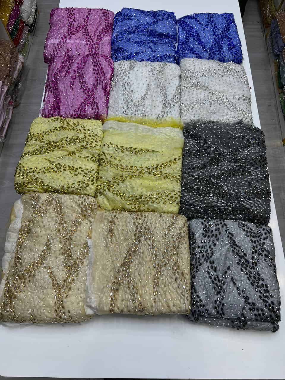 Its intricate, flowing pattern creates a glamorous sparkle with every movement — perfect for asoebi, wedding guest outfits, reception dresses, evening gowns, and statement couture pieces.